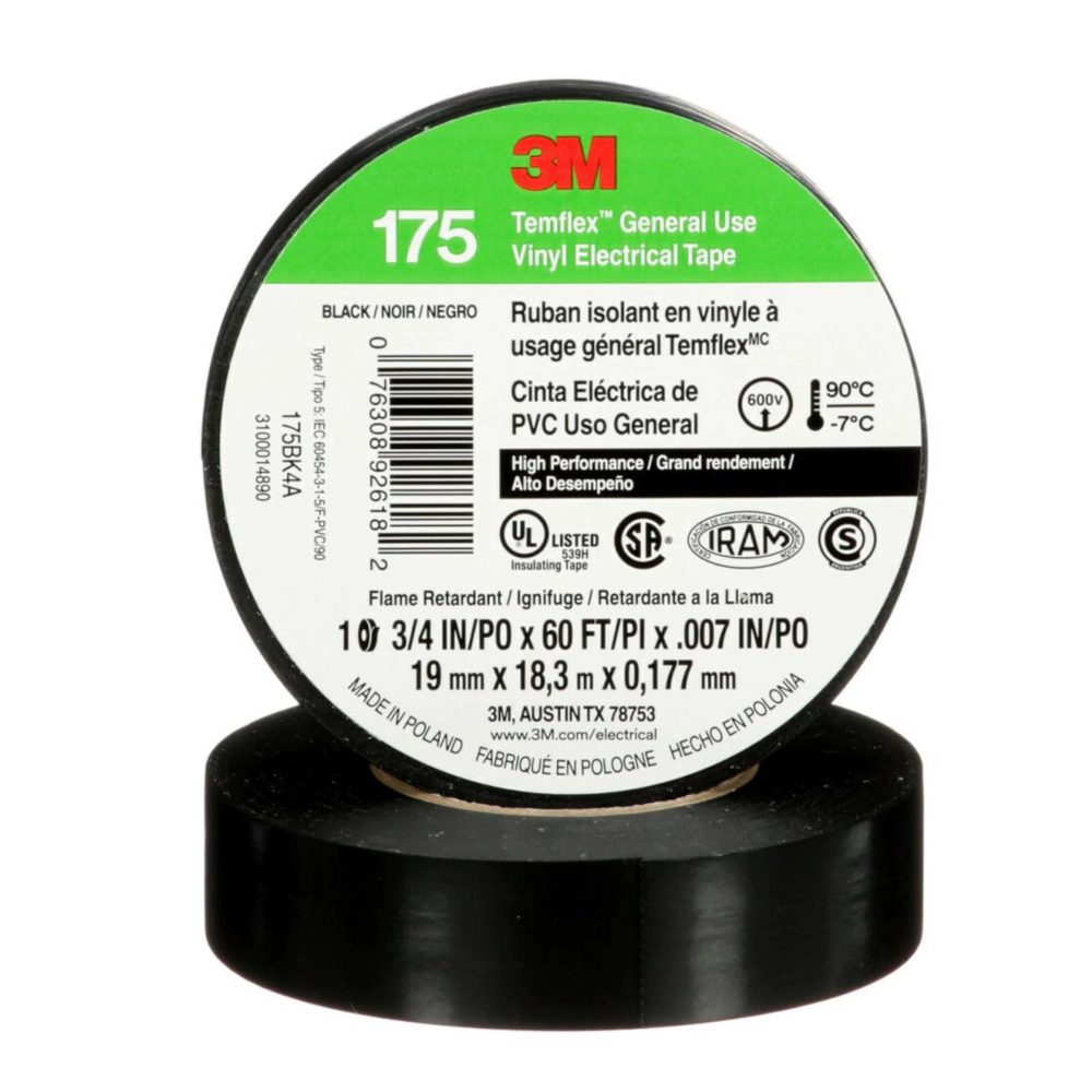 Está diseñada para funcionar en temperaturas ambiente de hasta 194 °F (90 °C). La cinta es adaptable para aplicaciones en climas fríos hasta 19 °F (-7 °C). Tiene una excelente resistencia a la abrasión, la humedad, los álcalis, los ácidos, la corrosión del cobre y las condiciones climáticas variables. La combinación de un respaldo de PVC elástico y un adhesivo a base de caucho sensible a la presión brinda protección eléctrica y mecánica con un volumen mínimo.