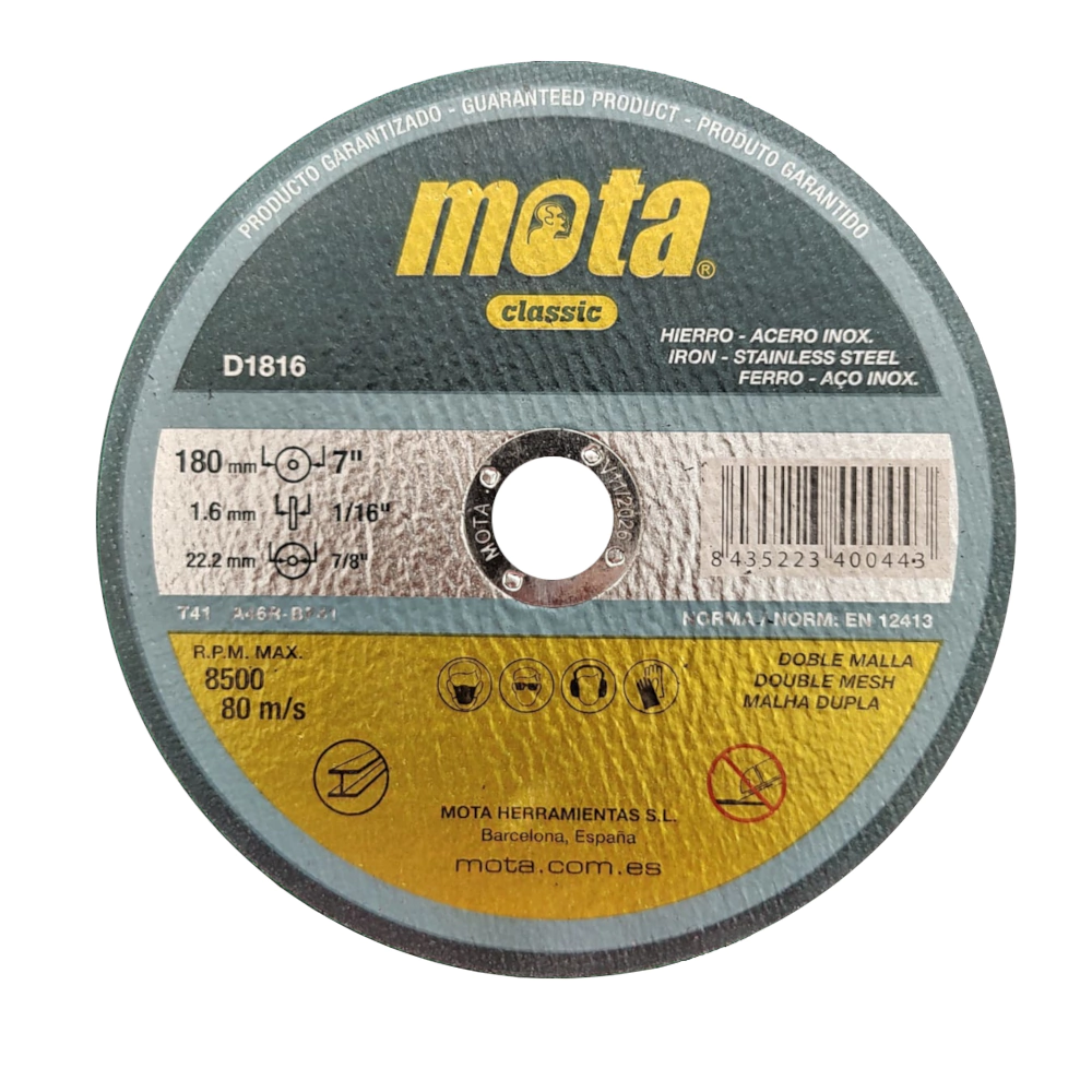Disco de corte ideal para el corte de acero inoxidable, metales y metales no ferroso.