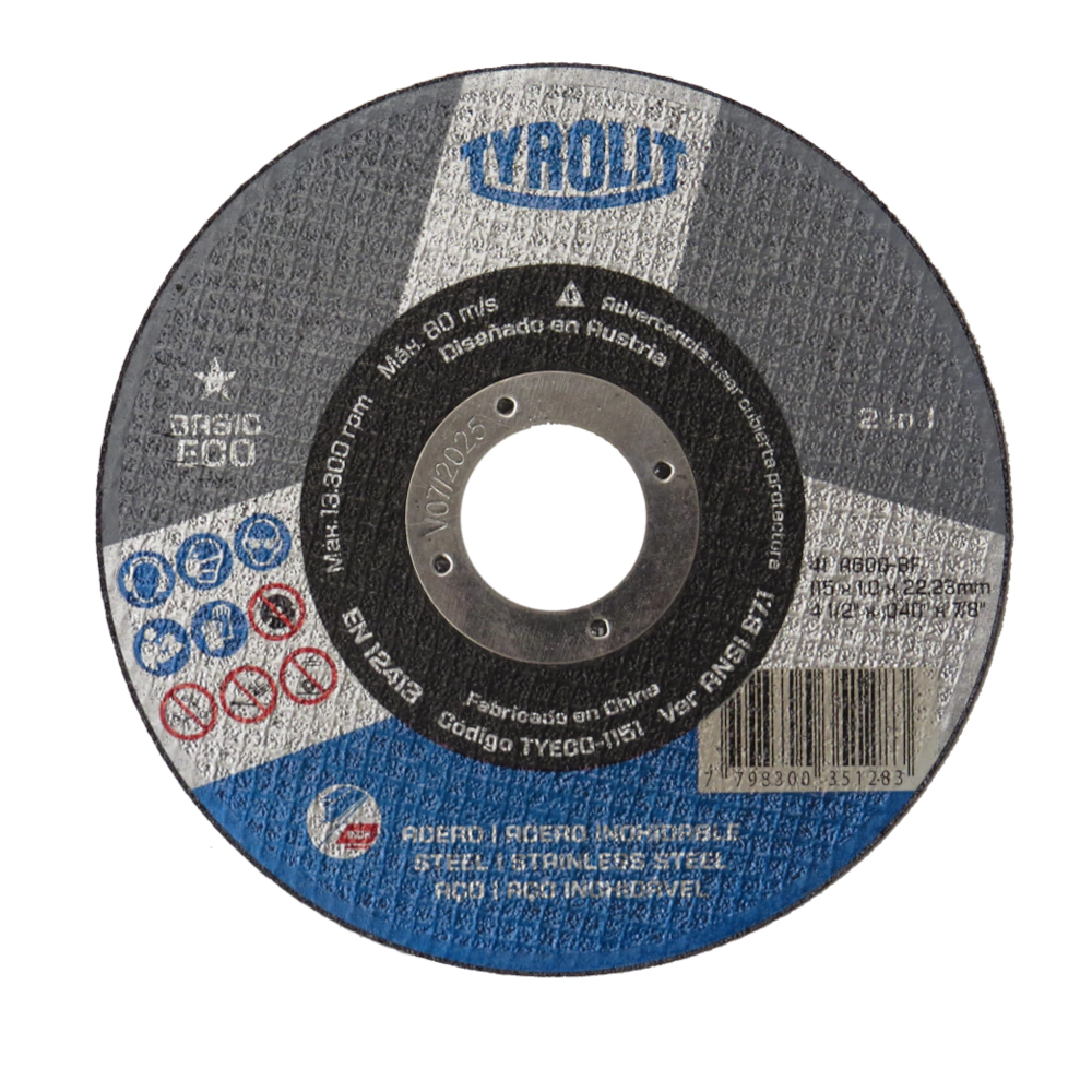 Disco de corte ideal para el corte de acero inoxidable, metales y metales no ferroso.