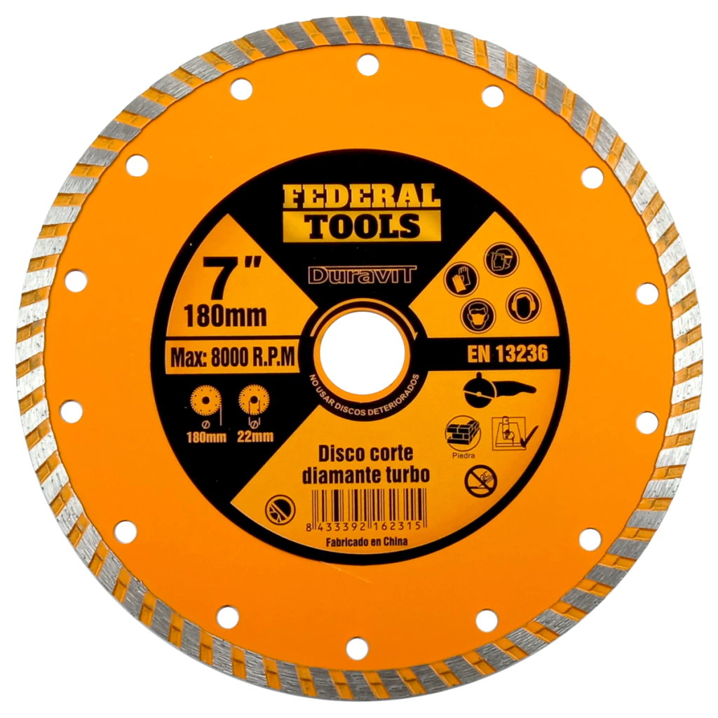 Es para el corte de material de obra, ladrillos, hormigón, cerámica, etc., uso en húmedo. Leer manual de amoladora. Utilizar equipo de protección individual. Verificar que las rpm máximas coincidan con las de la máquina a utilizar. Apretar la tuerca especial con la llave adecuada que lleva la maquina. Nunca iniciar el trabajo con un disco nuevo sin haber dejado girar en vacío unos 30 segundos para comprobar su acople a la maquina y su seguridad. Atención al sentido de giro. Para cambiar el disco, desenchufar la maquina de la red eléctrica.
