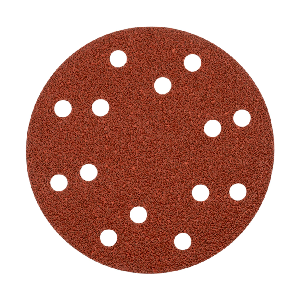 Discos abrasivos, Ø 150 mm, MADERA Y METAL, corindón puro, recubierto de óxido de aluminio, ligado con resina sintética maciza, material de soporte reforzado, con dorso de terciopelo, para el empleo en lijadoras excéntricas, para el lijado de metal y madera, pintura, laca, masilla, piedra y plástico.