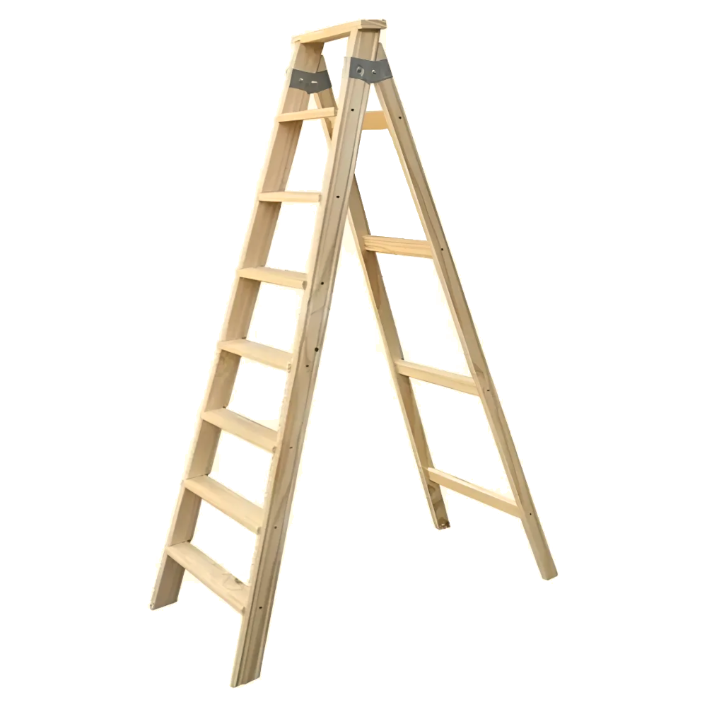 Largueros 1″x3″. Caballete 1″x2,5″. Escalones 1″x3″.