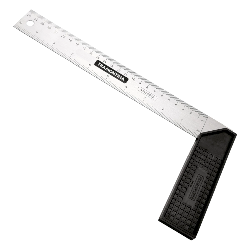 Si precisa confirmar ángulos de 90º, trazar líneas perpendiculares y tener una regla siempre a mano, va a necesitar una escuadra Tramontina. La herramienta perfecta para usted, que trabaja en la construcción civil o con pequeñas reparaciones.
