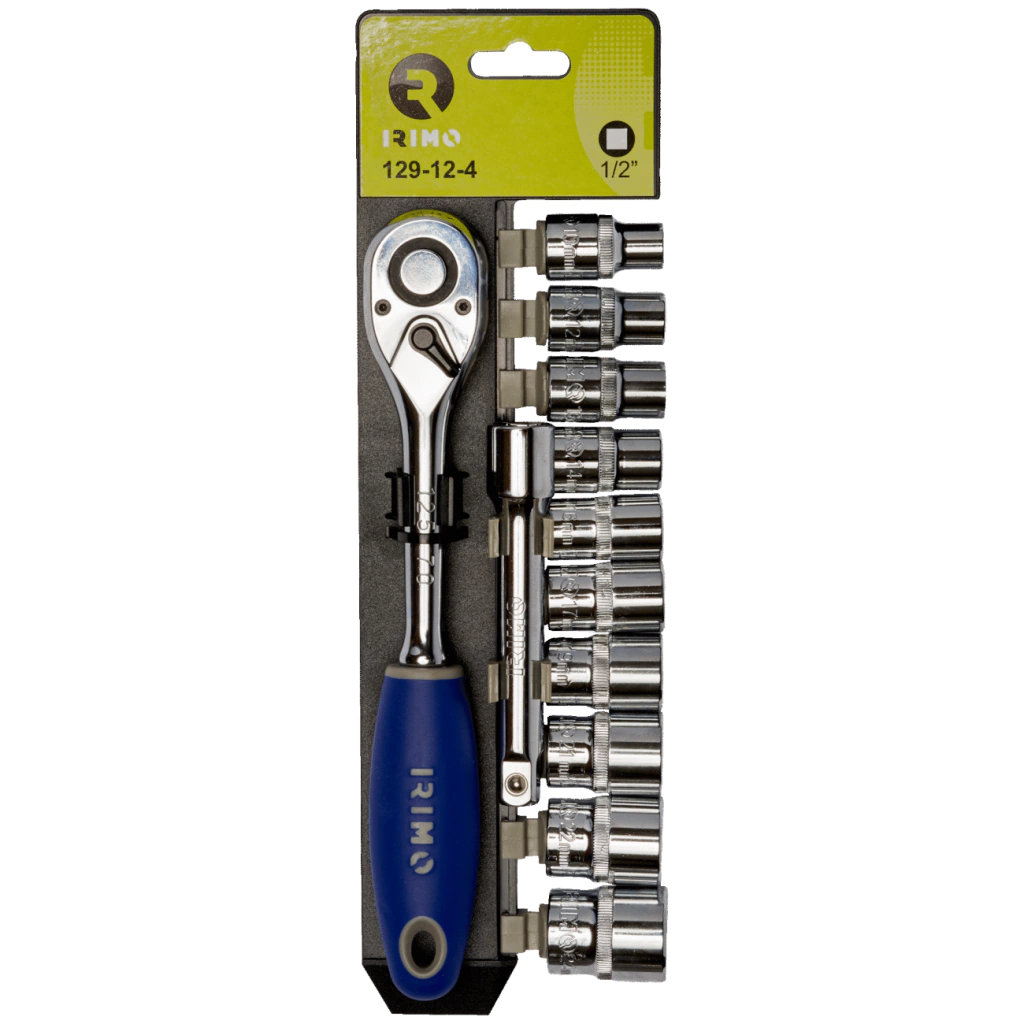 Contiene: Alargue 1/2 x 125mm – Crique 1/2 72 dientes – Bocallaves 1/2 x 10mm – 12mm – 13mm – 14mm – 16mm – 17mm – 19mm – 21mm – 22mm – 24mm