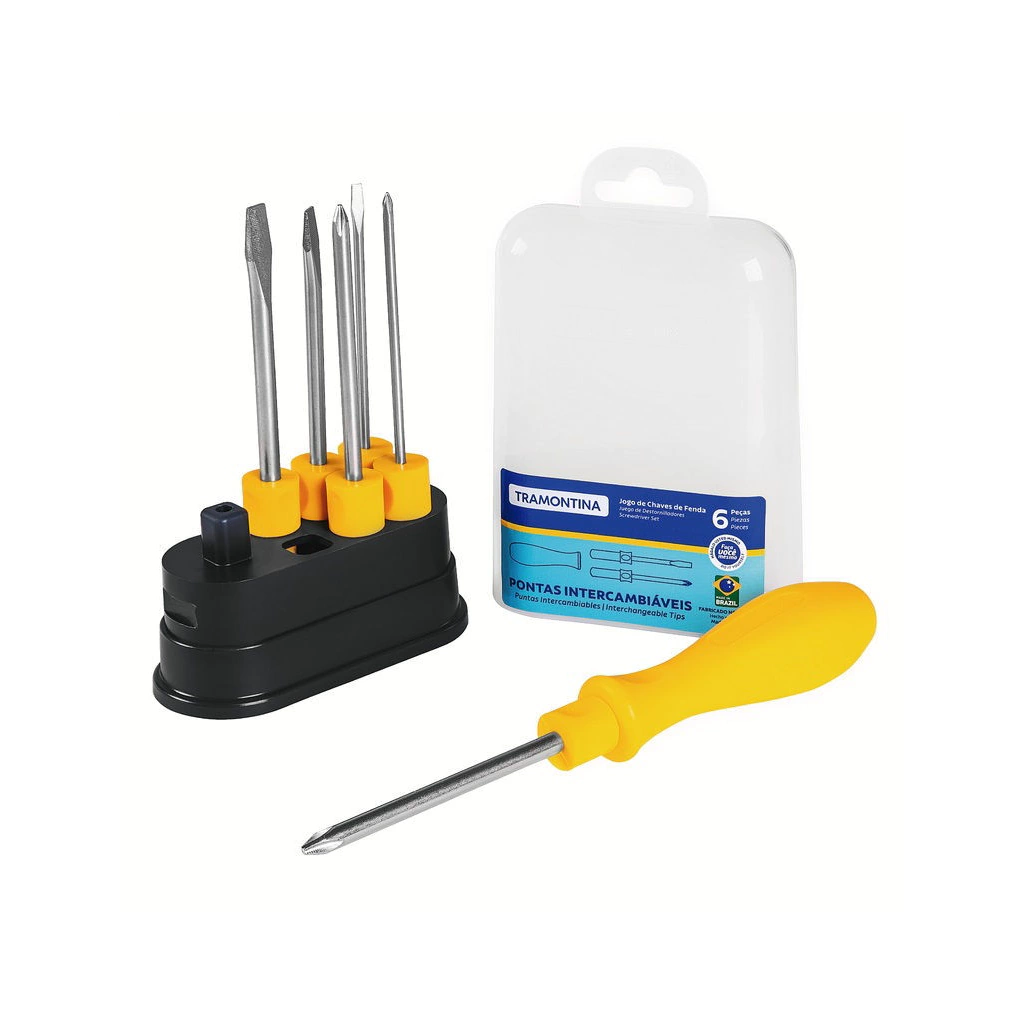 Un bonito kit de destornilladores aportará mucha practicidad a tu vida, sin duda. Entonces descubra el Juego de Destornilladores con Puntas Intercambiables de 6 Piezas Tramontina. Las puntas intercambiables hacen de este set un artículo perfecto para ti, ya que cuenta con piezas diversas y muy prácticas. Además, las herramientas son probadas con rigurosos estándares de calidad, garantizando durabilidad y resistencia.