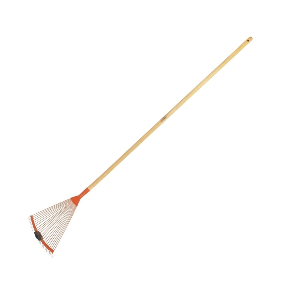 – Fabricación en acero carbono especial de alta calidad. – Recibe pintura electrostática a polvo, que tiene mejor presentación visual y mayor protección contra la oxidación. – La lámina está fabricado de una única pieza templada, ofreciendo mayor resistencia y menor desgaste durante el uso. – Posee 22 dientes de alambre. – Cuenta con regulado de la distancia entre los dientes, adaptándose a los más variados tipos de materiales que se vayan a barrer. – Posee ojo de 23 mm de diámetro. – El mango de 120 cm de esta herramienta, además de tener excelente resistencia, se fabrica con madera de origen renovable. – Mango con terminación barnizada para una mejor presentación del producto. La capa protectora de barniz incoloro realza su tonalidad, concediéndole brillo y un toque más liso al producto.