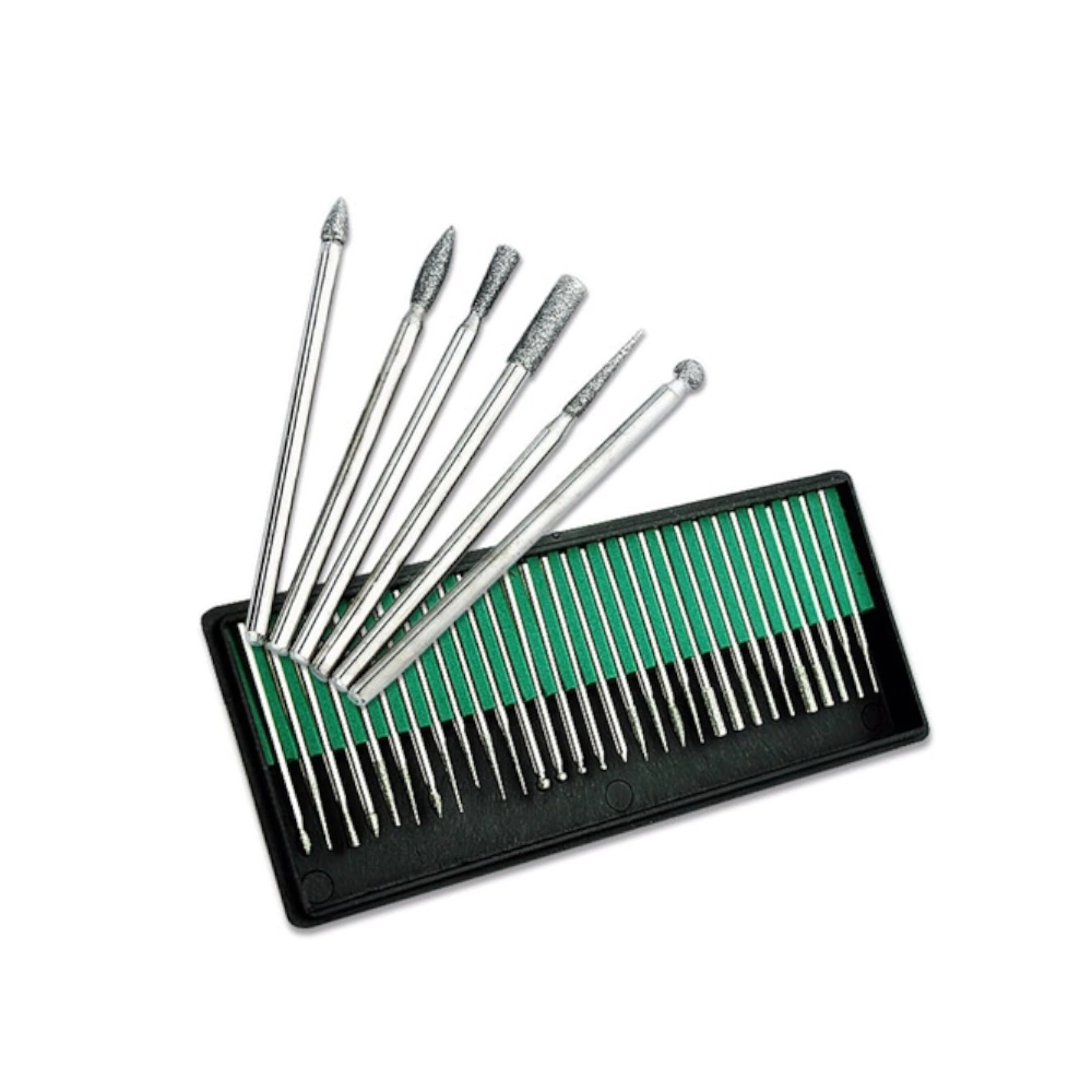 Para trabajos de detalle de grabado, escultura y retoque. se usan en madera, cerámica, vidrio, acero endurecido, piedras semi-preciosas y otros materiales duros.