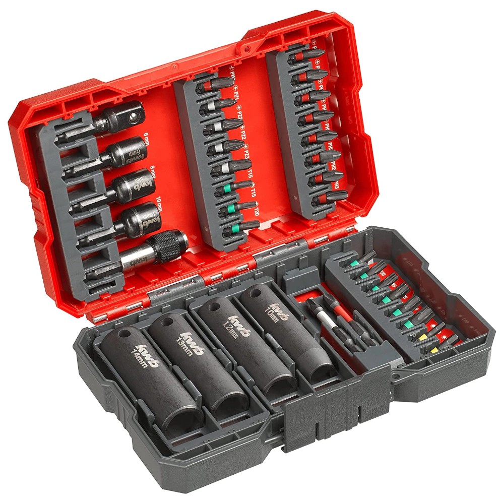 Las puntas de la caja de puntas Impact kwb son ideales para destornilladores de impacto corrientes de venta en el mercado. Gracias a la zona de torsión especial y al acero modificado, las puntas son completamente resistentes a los golpes, extremadamente duraderas y resisten sin problemas una carga continua incluso bajo condiciones exigentes extremas.