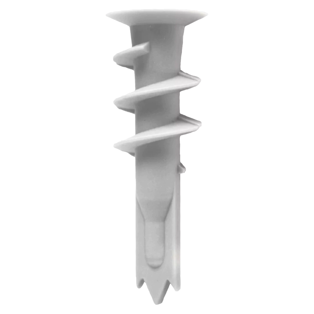 El taco en espiral se sujeta mediante unión continua. La construcción compacta permite también el montaje en paredes en las que el grosor de la placa o del hueco detrás de la placa no se conoce. El GK de fischer puede alojar tornillos para madera, chapa y placas de sujeción con grosores de 4 a 5 mm, así como diferentes corchetes y ojales. De este modo, es universalmente ideal para fijar de forma rápida y segura, p. ej. cuadros, luces e instalaciones eléctricas.